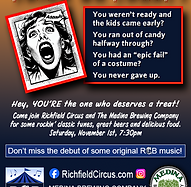 Hey, You’re the one who deserves a treat! Join Richfield Circus and Medina Brewing Company for some rockin’ classic tunes, great beers, and delicious BBQ. Saturday Nov 1st, 7:30. We'll be debuting some original RCB music at this show. You won't want to miss it!